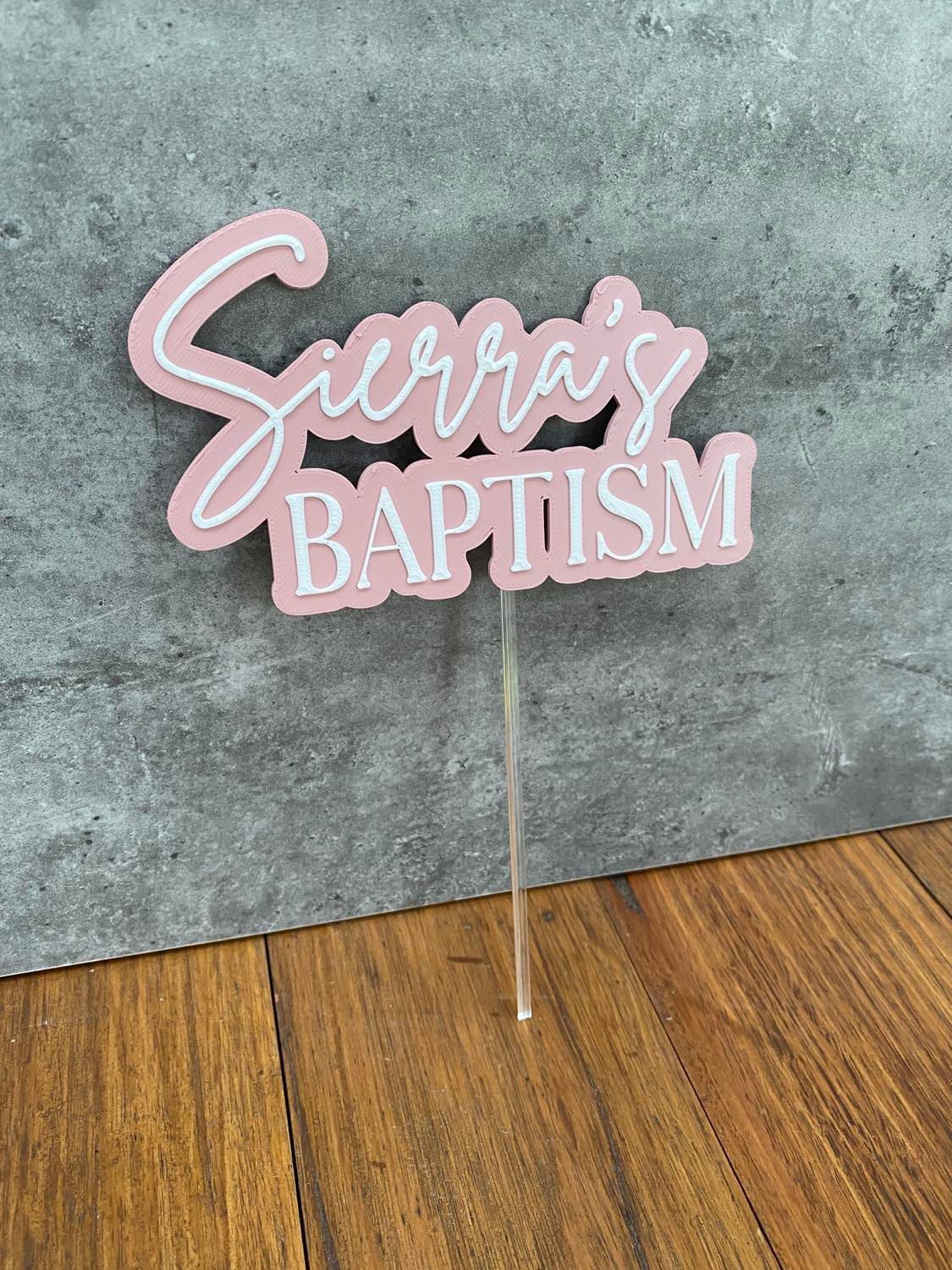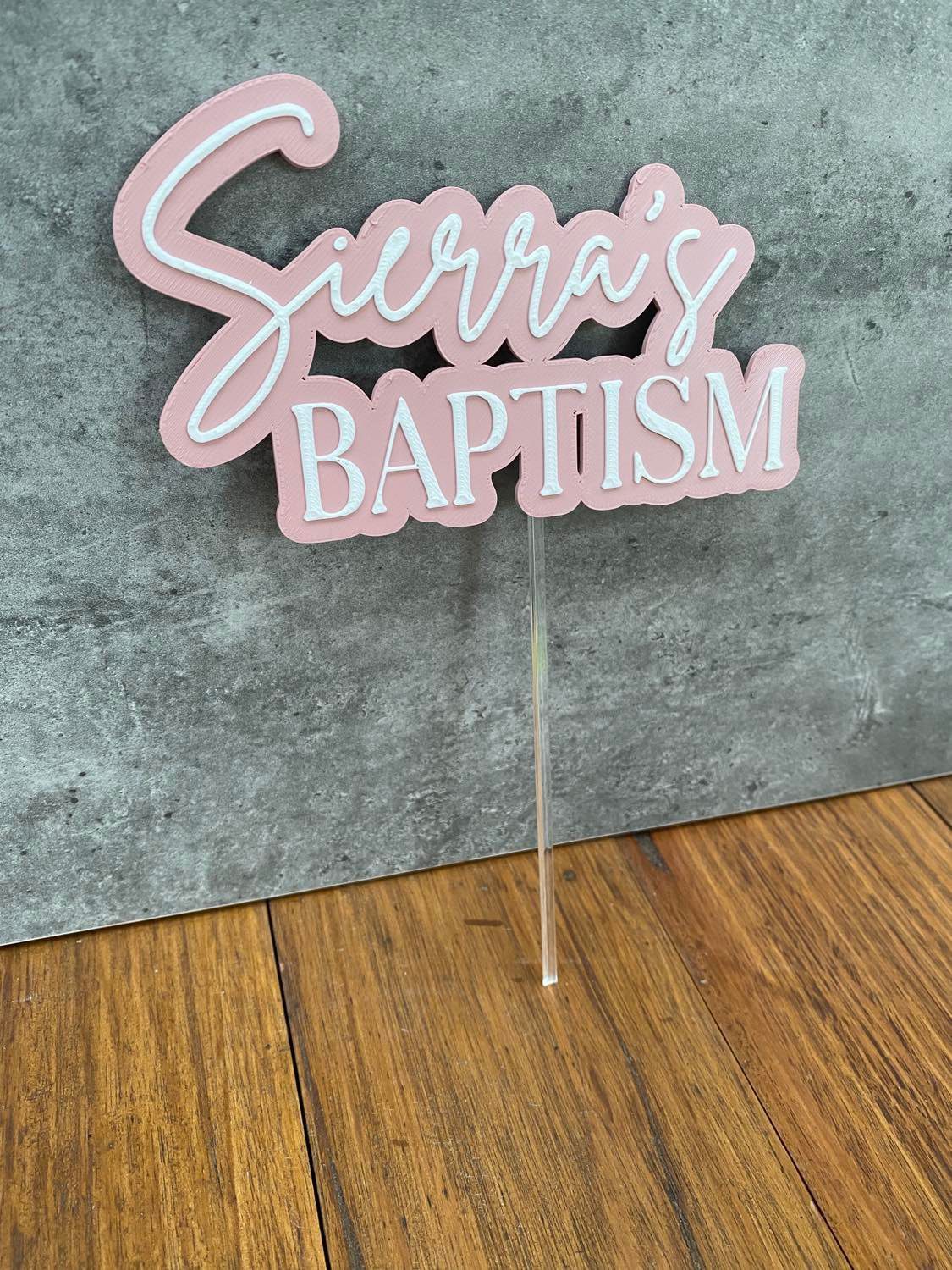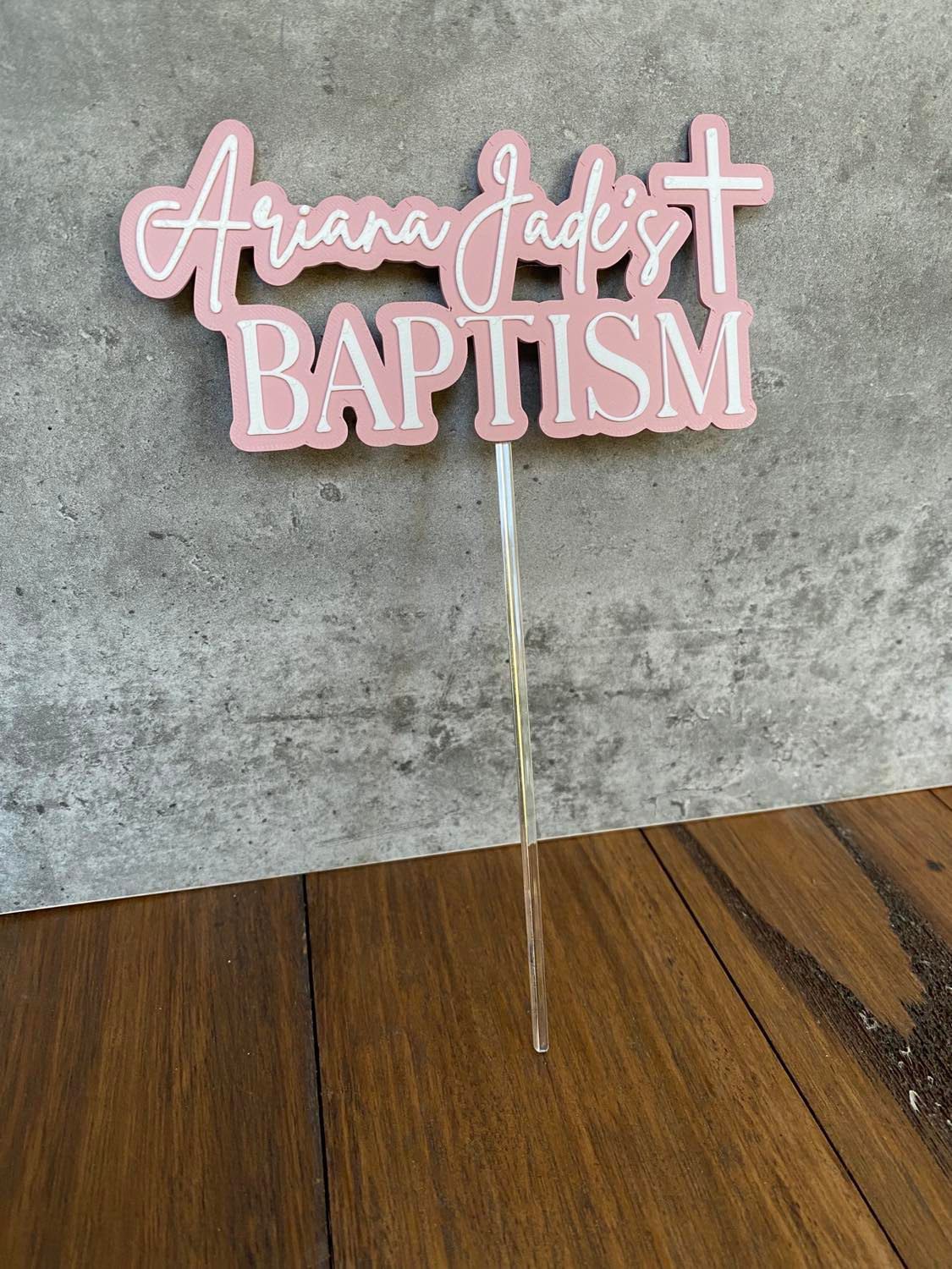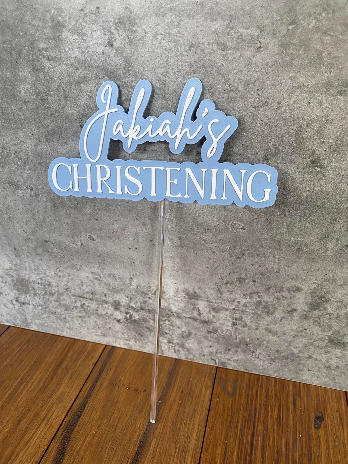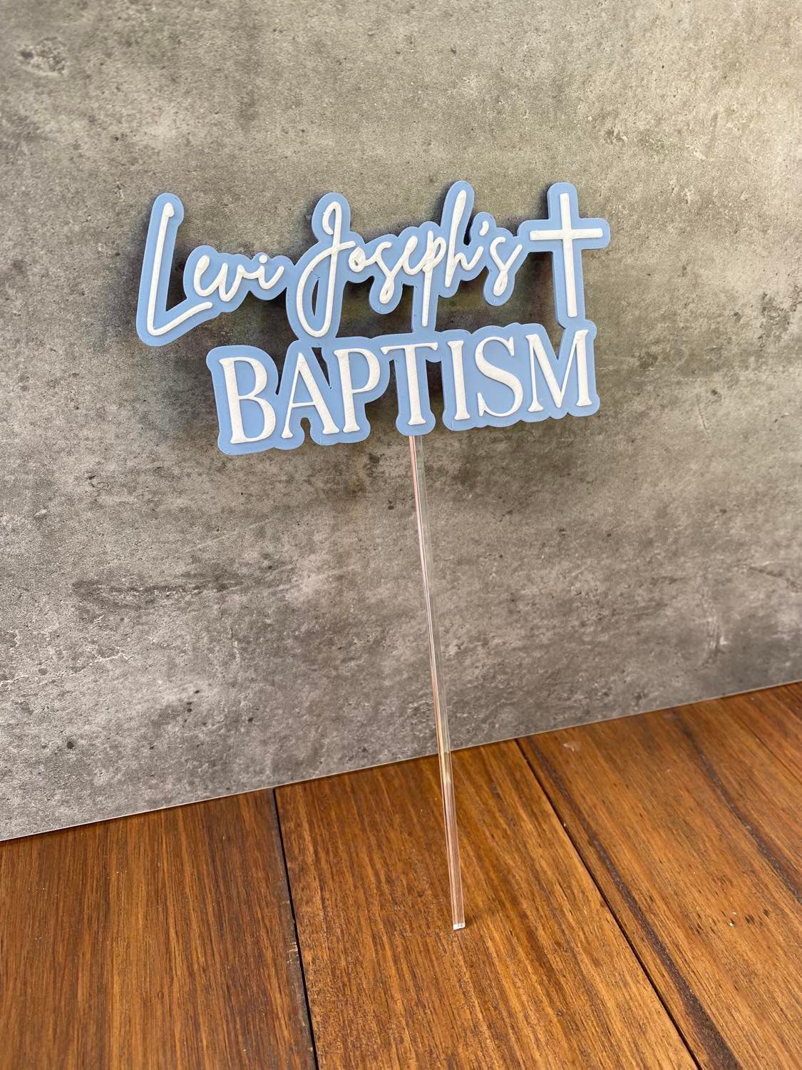 Our ‘Baptism Cake Topper’ is the perfect personalised touch to your little ones christening cake. This cake topper is a great way for parents, fathers and mothers to make their baby’s baptism cake stand out! You have the option to personalise with your baby’s name and choose two colours from our extensive colour choice. A lovely keepsake to enjoyed for years to come.