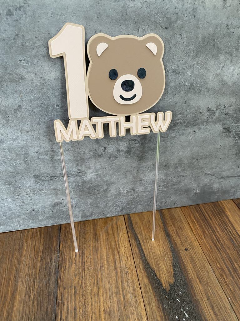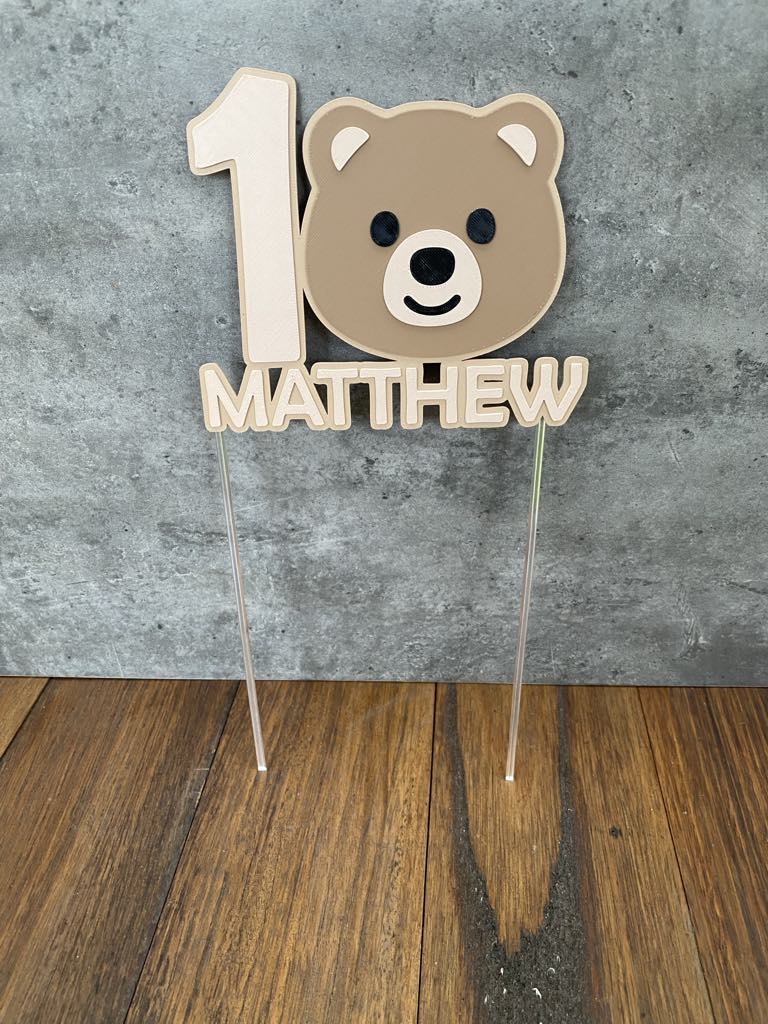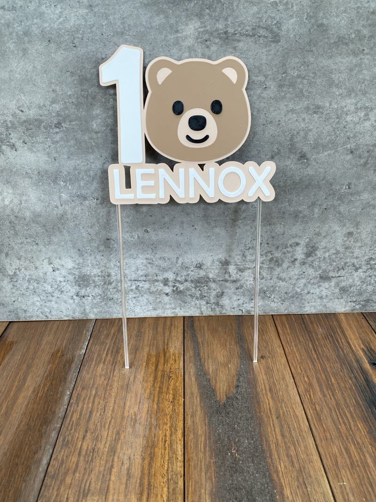 Our ‘Bear Cake Topper’ is the perfect personalised touch to your little one’s birthday cake. This cake topper is a great way for mothers, fathers and parents to make their child’s cake stand out! You have the option to personalise with their name, age and colours of choice. A lovely keepsake to enjoyed for years to come.