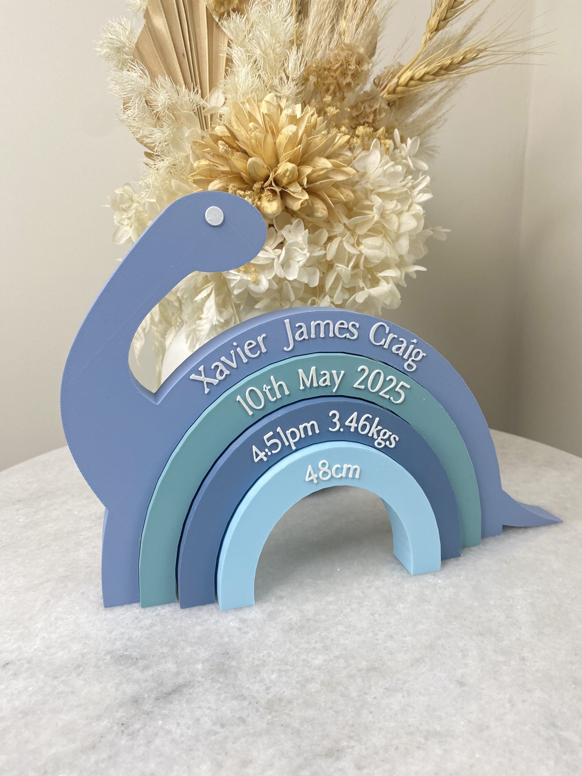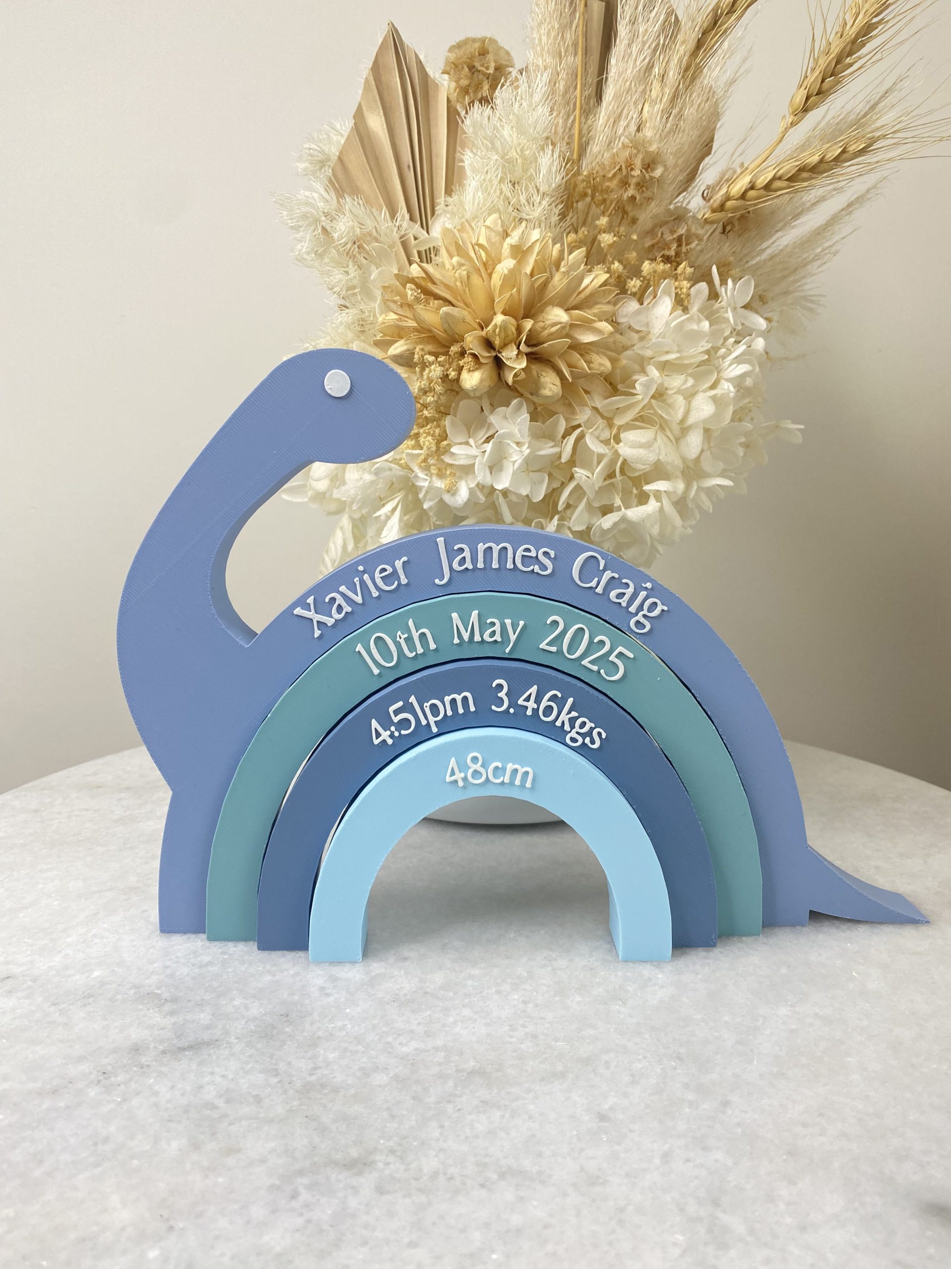 Our Dino Stacker 2 are a completely unique personalised piece of nursery décor. They can be used to display your little ones birth details, just their name or have your whole family’s names on them. A lovely keepsake to enjoy for years to come.