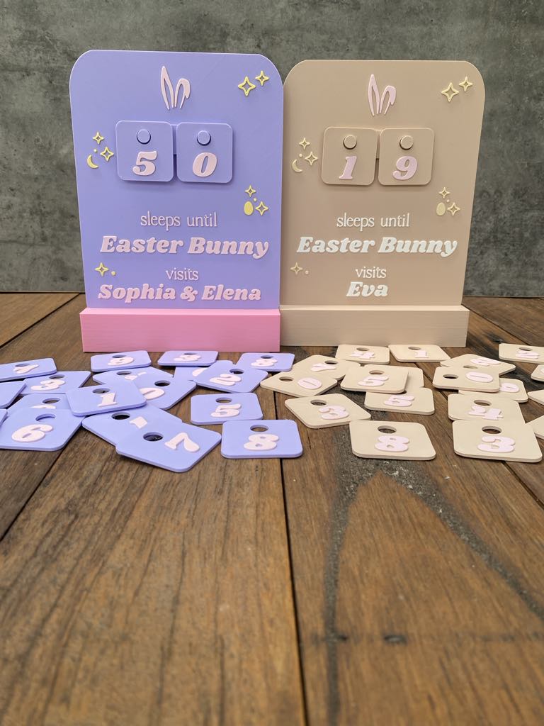 Our ‘Easter Bunny Countdown Plaque’ is the perfect personalised addition to your Easter Decor this year! A great way for mothers, fathers to help their children to countdown the days until the Easter Bunny comes. It’s a great way to practice number counting and build the hype around Easter. You can countdown from 99 days! Choose to add a stand if you like and your colours!