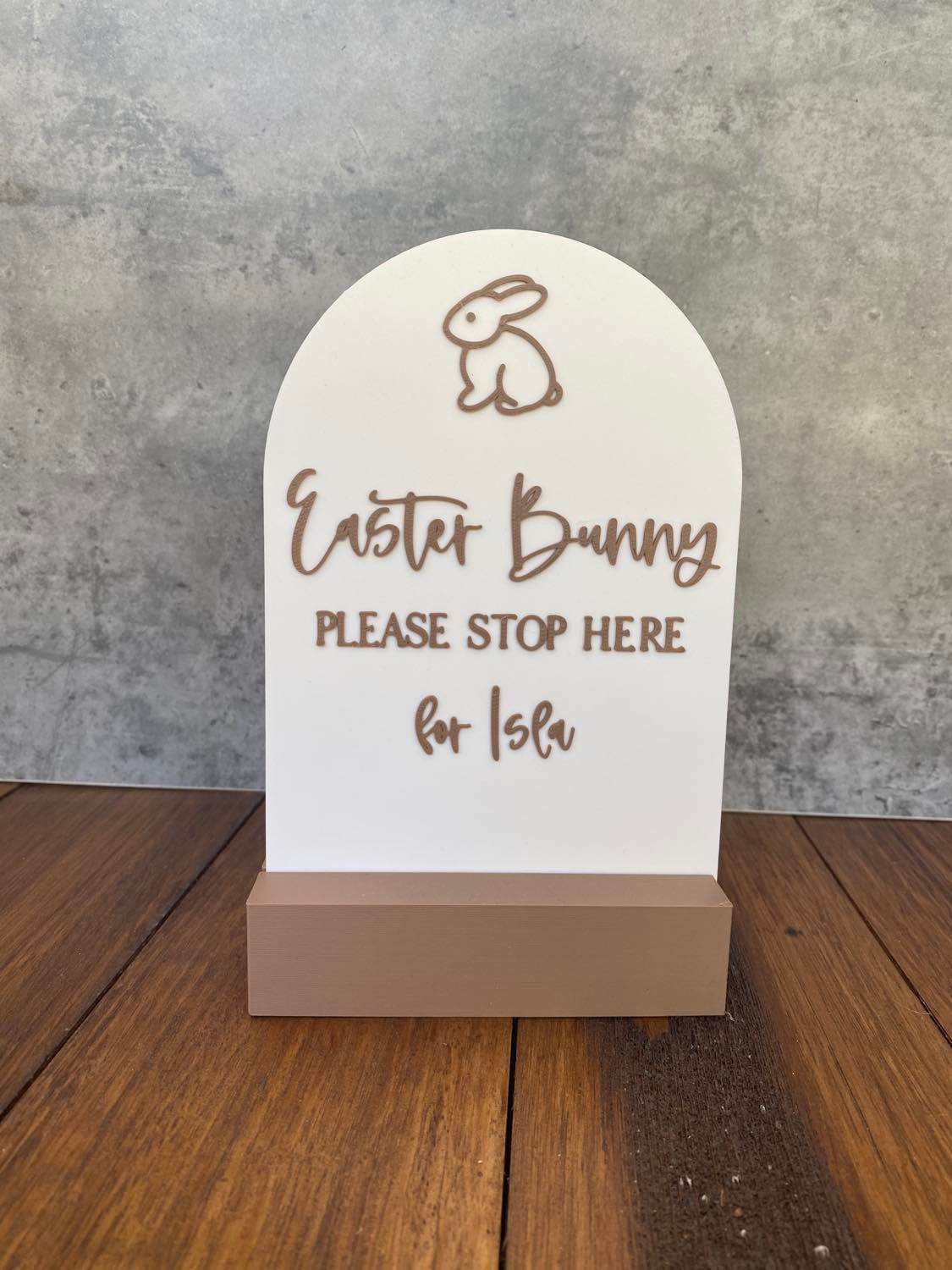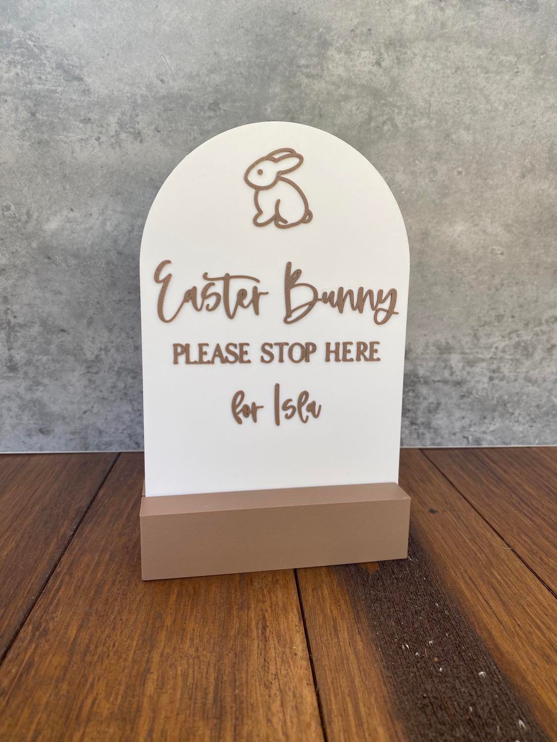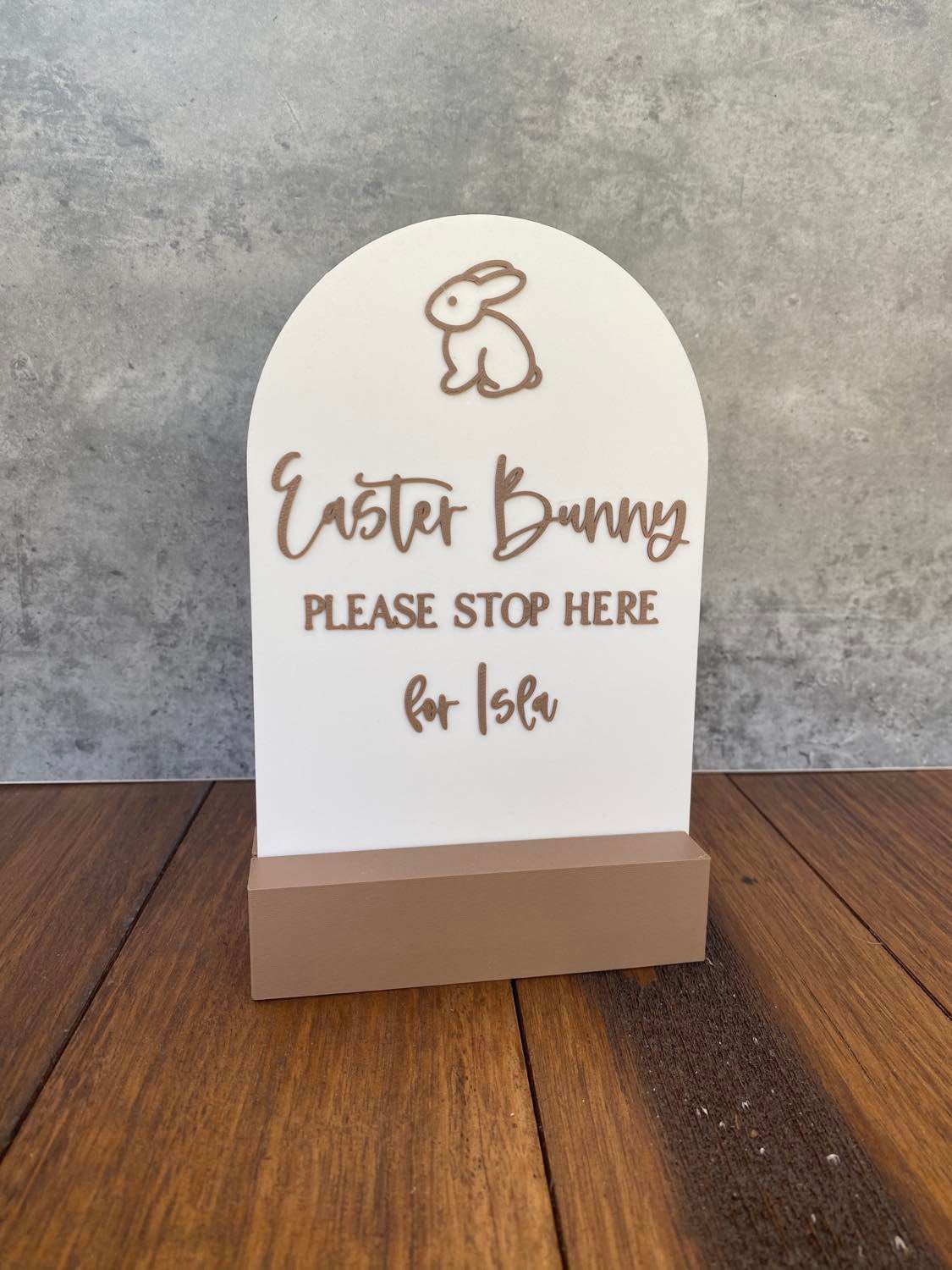 Our ‘Easter Bunny Please Stop Here Arch’ is the perfect personalised addition to your Easter Egg Hunt! Make sure the Easter Bunny knows to stop at your house this year. Personalise with your children’s names. Choose to add a stand if you like and choose the size!