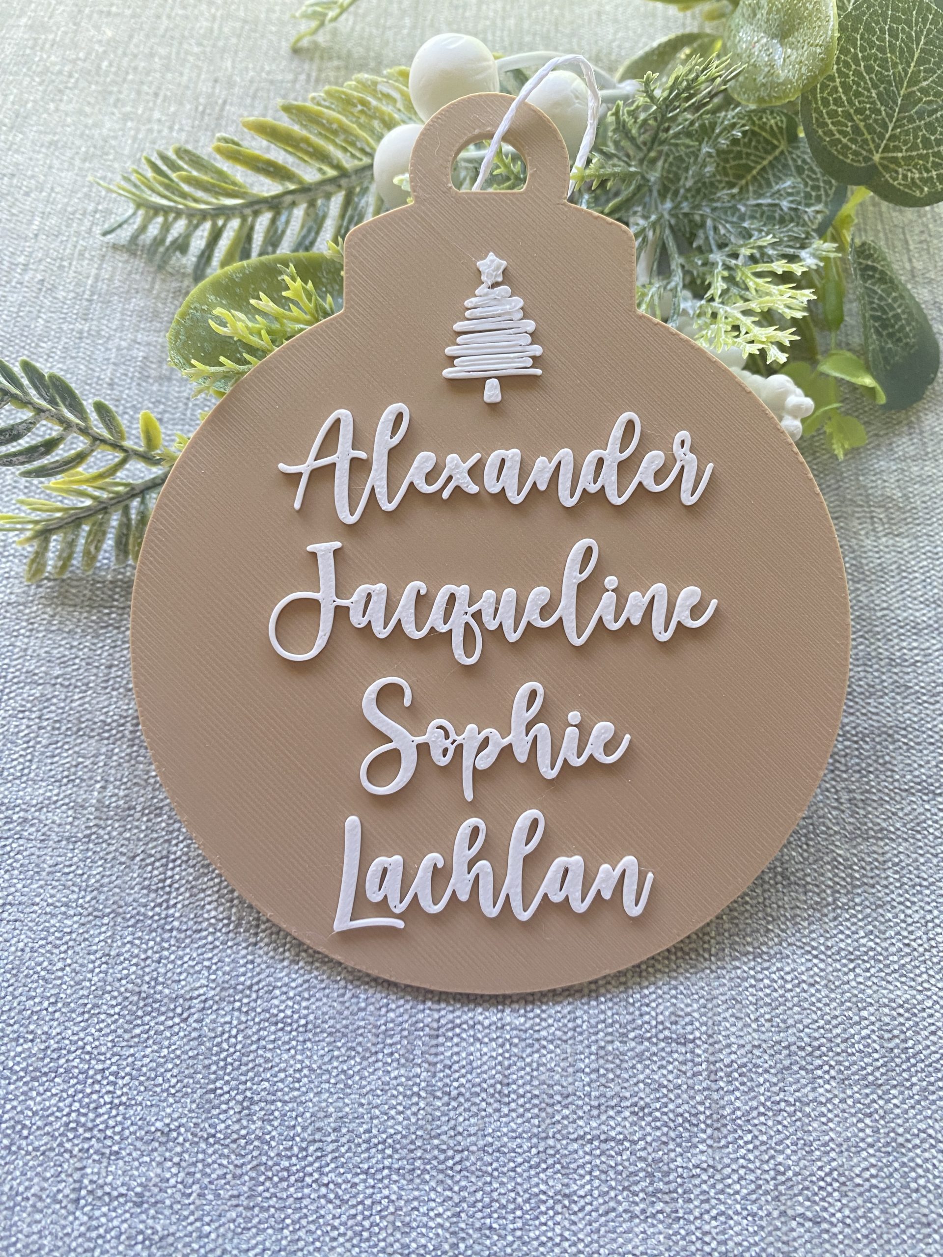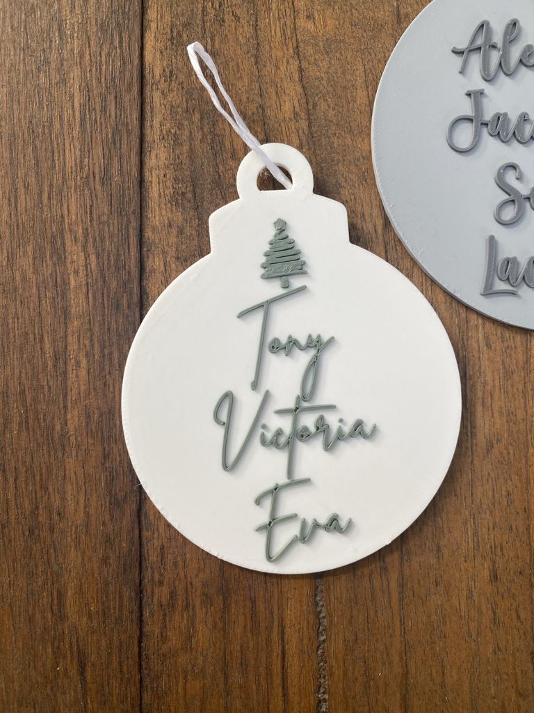 Our ‘Family Names Christmas Decoration’ is the perfect personalised addition to your Christmas tree this year! A great way for mothers, fathers, families and kids to have their own personalised decoration . Our Family Names Christmas Decorations allows you to add your names. Available in two sizes.