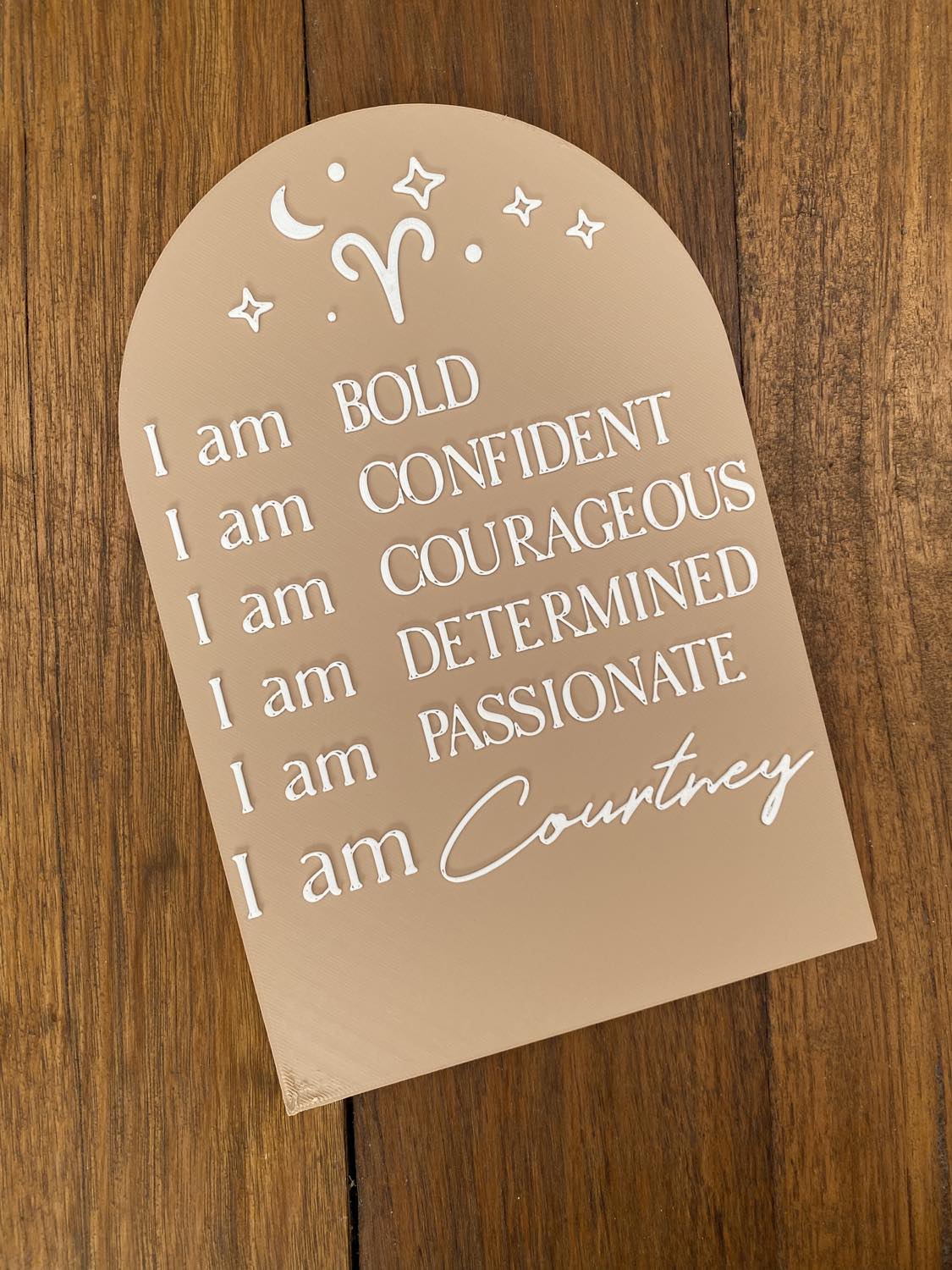 Our ‘Personalised Astrology Plaque’ is a Ari & Arlo and COURTTNEYROSE COACHING collaboration. Each plaque has been careful curated, Courtney using her cosmic skills to hand pick astrological affirmations to help make healthy habits for you and your children and us with our design magic. Every Star Sign in our ‘Personalised Astrology Plaque’ has a unique design that resembles the constellation for that astrological sign and you can personalise with your or your child’s name!