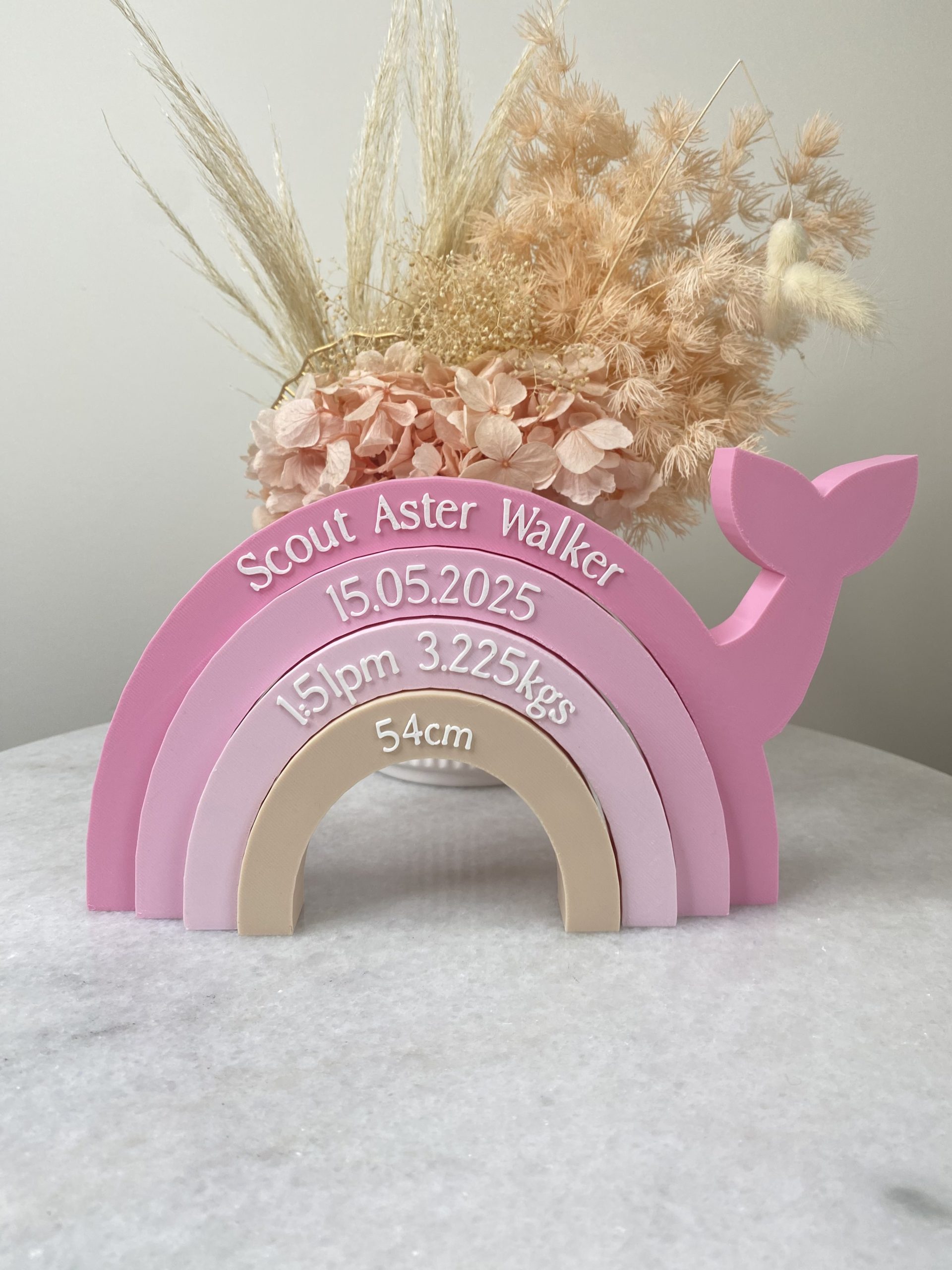 Our 3D Rainbows are a completely unique personalised piece of nursery décor. They can be used to display your little ones birth details, just their name or have your whole family’s names on them. A lovely keepsake to enjoy for years to come.